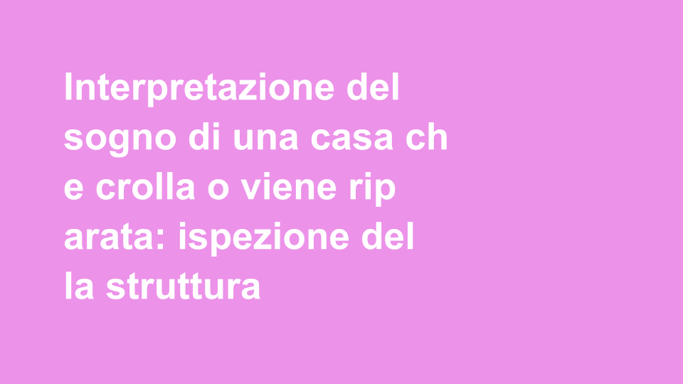 Hai mai sognato di vedere una casa che crolla o che è in riparazione? Questo tipo di sogno può avere significati profondi, legati alla tua vita interiore e alle tue emozioni. In effetti, esplorare il mondo onirico può offrirci chiavi di lettura sulla nostra esistenza quotidiana, aiutandoci a comprendere meglio noi stessi.